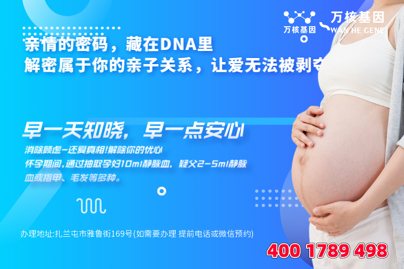 扎兰屯dna胎儿亲子鉴定办理地址:扎兰屯市雅鲁街169号(如需要办理 提前电话或微信预约)-预约电话:4001789498,扎兰屯服务地区包括:海拉尔区、扎赉诺尔区、阿荣旗、莫力达瓦达斡尔族自治旗、鄂伦春自治旗、鄂温克族自治旗、陈巴尔虎旗、新巴尔虎左旗、新巴尔虎右旗、满洲里市、牙克石市、扎兰屯市、额尔古纳市、根河市等周边城市,可在线咨询:dna胎儿亲子鉴定、司法亲子鉴定、移民亲子鉴定、入户亲子鉴定、中考亲子鉴定、高考亲子鉴定、个人隐私亲子鉴定等等咨询服务。